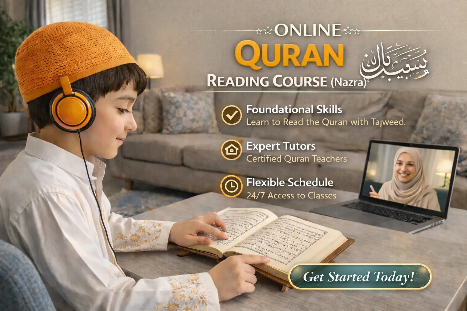 Begin your Quran learning journey with trusted expert tutors at home.